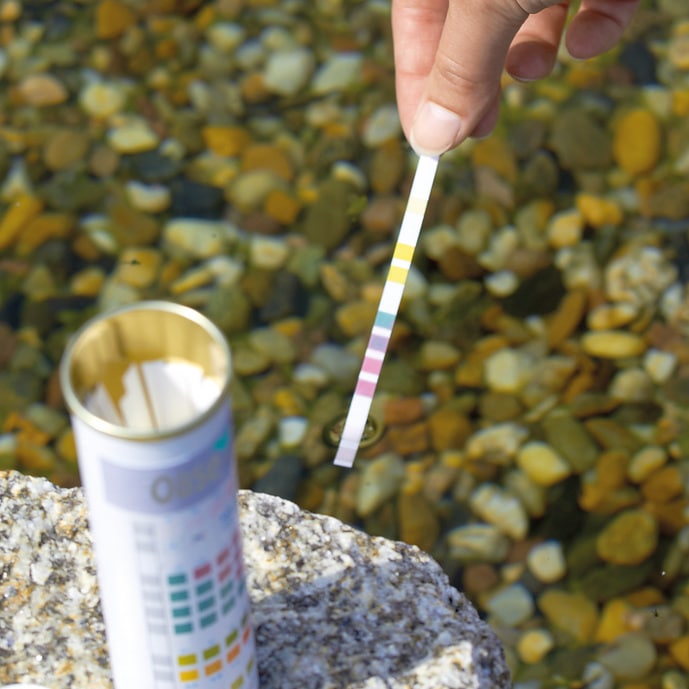 Bij elke online bestelling wordt een gratis watertest geleverd die onder andere de KH-waarde meet.