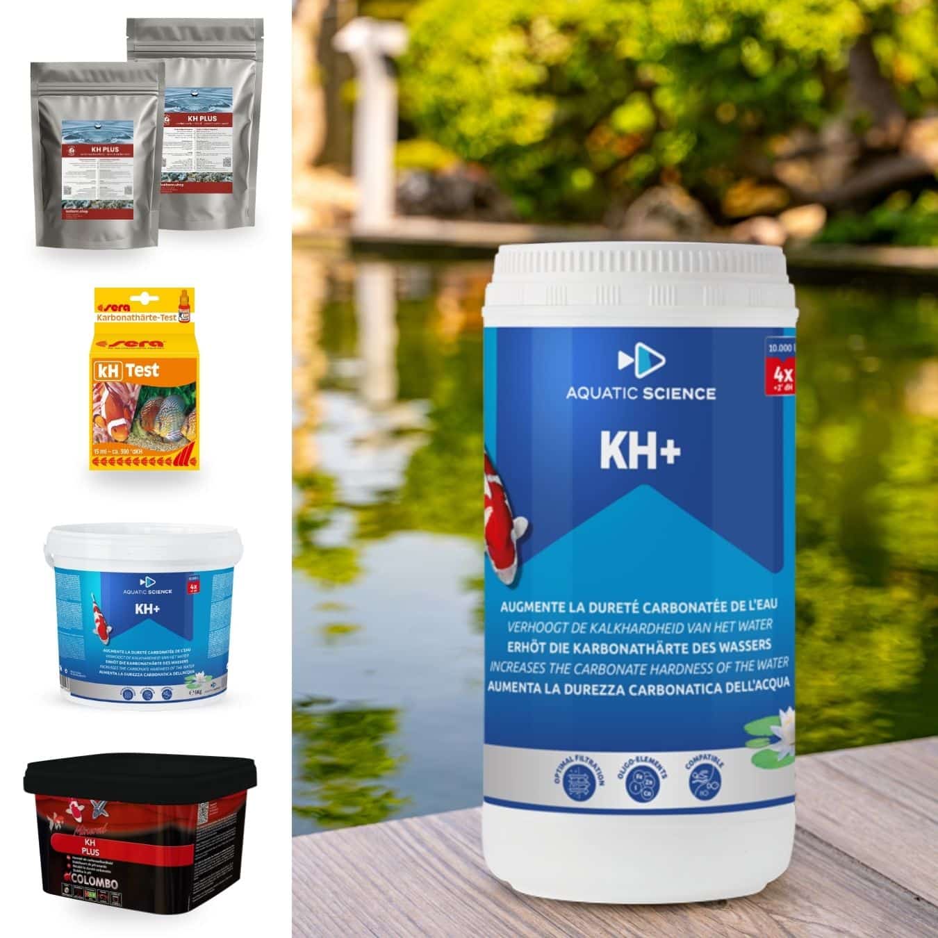 KH-plus producten bevatten geconcentreerde carbonaten die de bufferwaarde van vijverwater gericht verhogen. Dit is de meest gecontroleerde, voorspelbare en meestal de goedkoopste manier om de KH-waarde te corrigeren.
