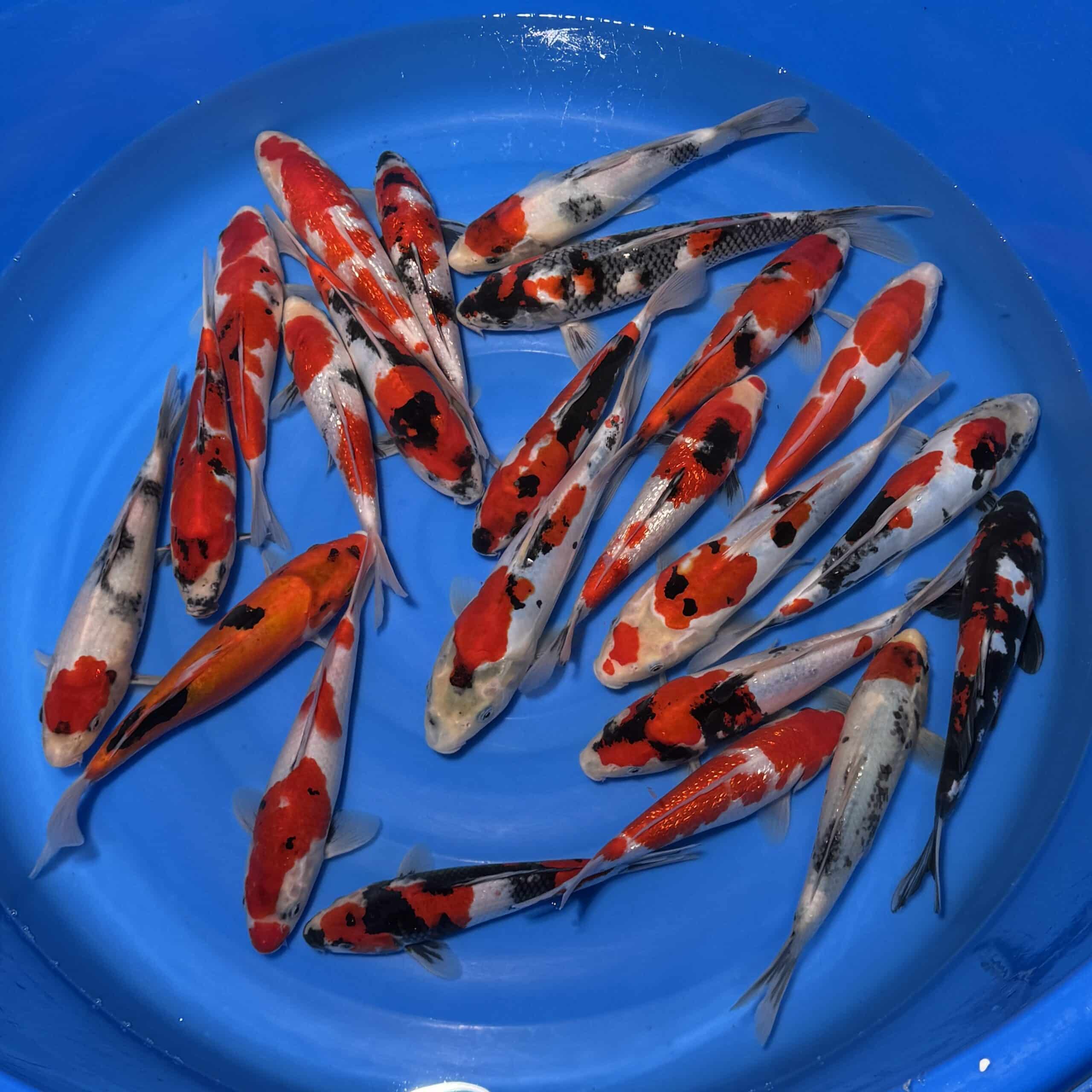 - S’il s’agit d’un mix de koï : mentionnez les variétés (couleurs) souhaitées dans les « remarques » lors de la procédure de commande. Les koï que vous voyez en photo ne sont pas toujours disponibles, nous nous efforçons d’envoyer des koï semblables.