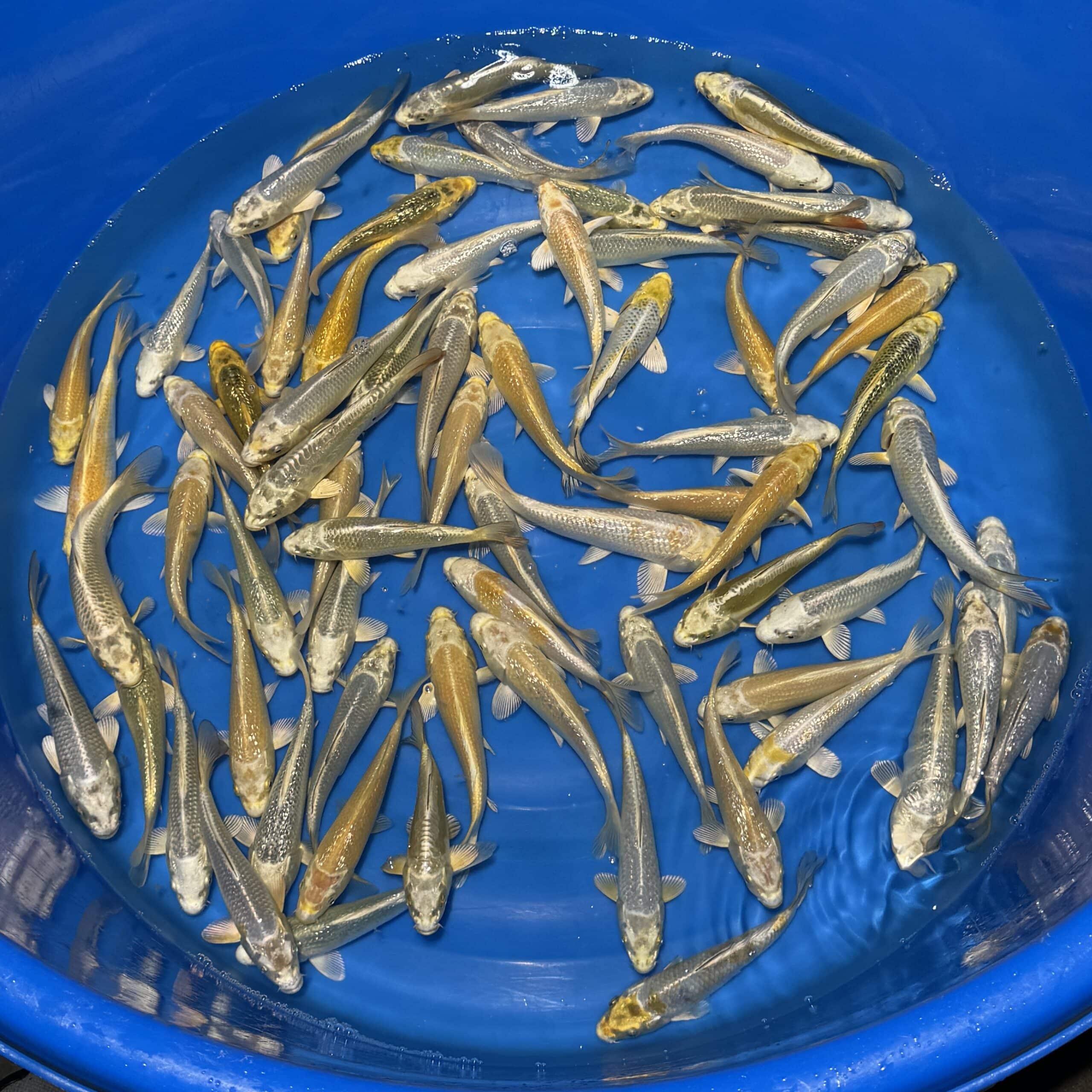 - S’il s’agit d’un mix de koï : mentionnez les variétés (couleurs) souhaitées dans les « remarques » lors de la procédure de commande. Les koï que vous voyez en photo ne sont pas toujours disponibles, nous nous efforçons d’envoyer des koï semblables.