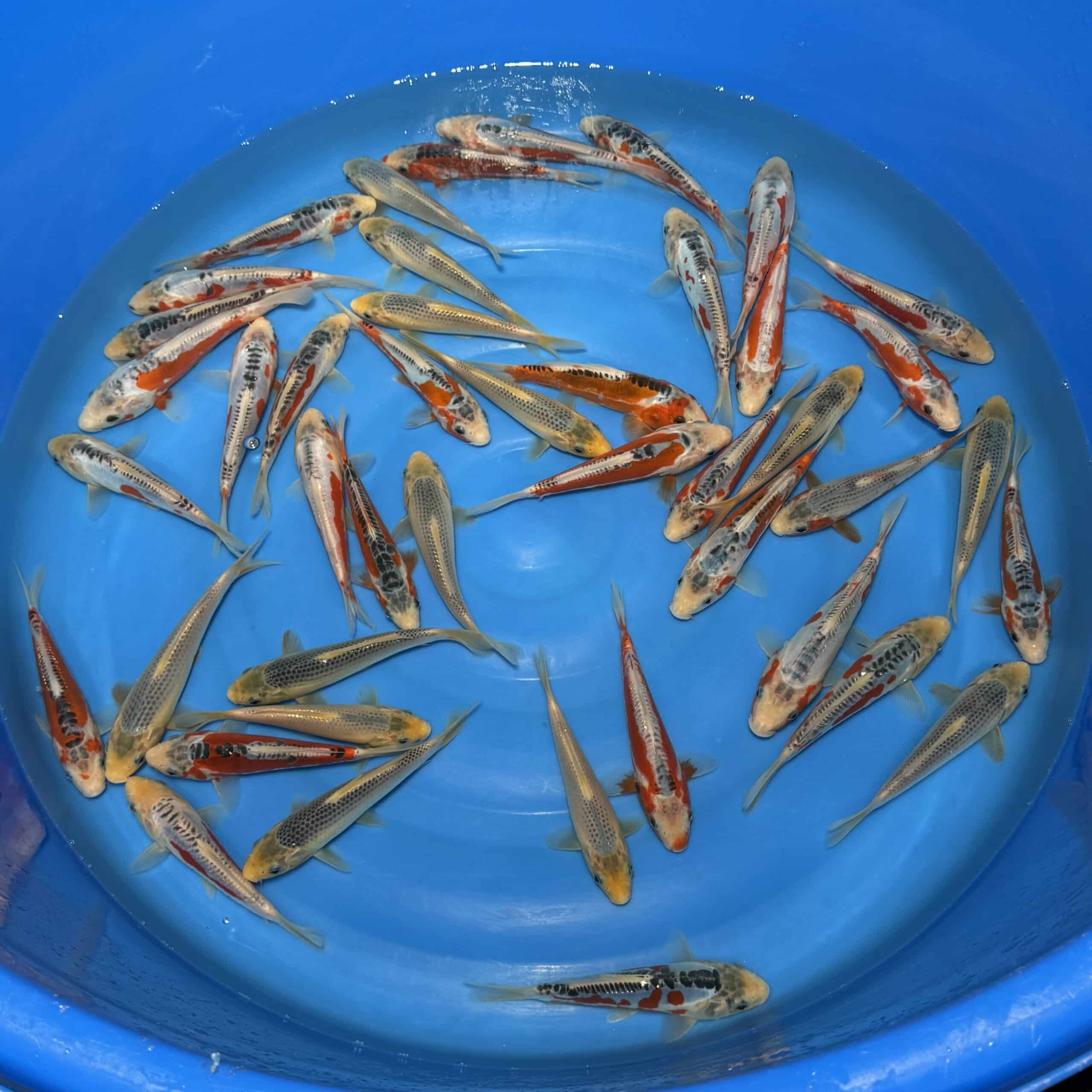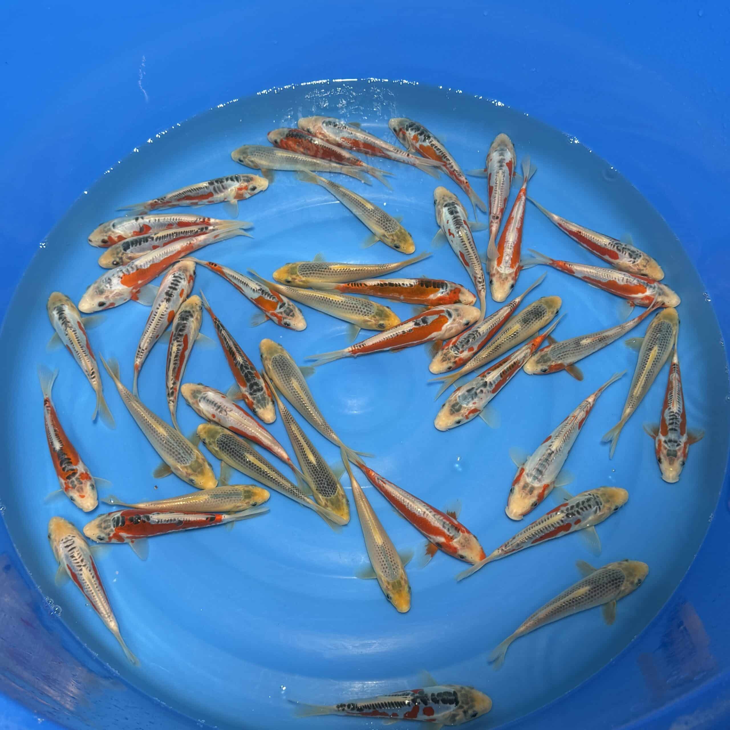 - S’il s’agit d’un mix de koï : mentionnez les variétés (couleurs) souhaitées dans les « remarques » lors de la procédure de commande. Les koï que vous voyez en photo ne sont pas toujours disponibles, nous nous efforçons d’envoyer des koï semblables.